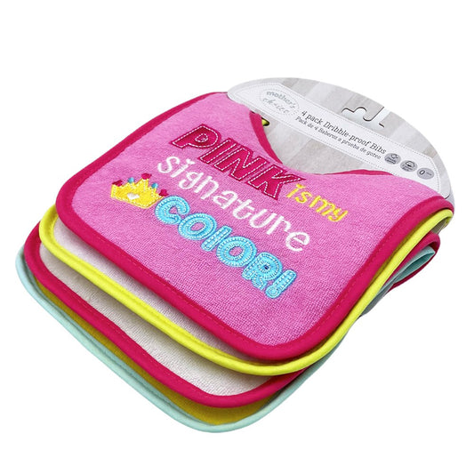 Mother's Choice 4 Pack Embroidered Baby Dribble-Proof Bibs (IT2522/Pink Is My Signature Color)