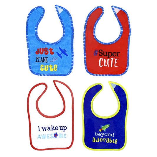 Mother's Choice 4 Pack Embroidered Baby Dribble-Proof Bibs (IT2523/Super Cute)
