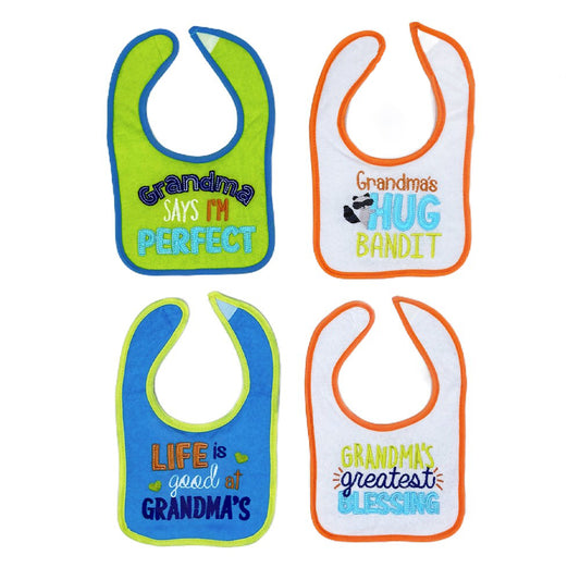Mother's Choice 4 Pack Embroidered Baby Dribble-Proof Bibs (IT2524/Life Is Good at Grandma's)